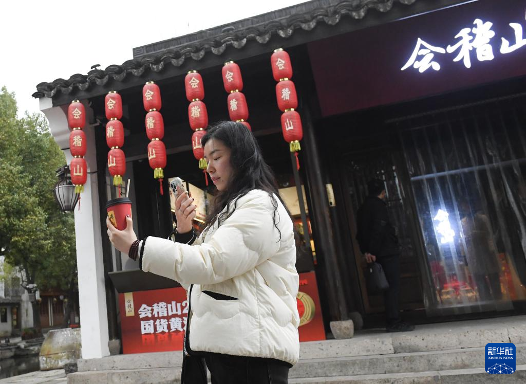2月20日,一名游客在绍兴市越城区黄酒小镇拍摄刚刚购买的黄酒奶茶。 近年来,在黄酒主产区浙江绍兴,黄酒产业在保留纯手工酿制技艺的基础上,开始向智能化生产迈进,逐步实现酿造智能化、储存智慧化、勾调数字化、物流无人化。与此同时,结合国潮,越来越多终端店铺推出黄酒奶茶、黄酒咖啡、黄酒布丁等创意饮品、美食,消费场景和包装愈发年轻态。 2023年绍兴市规上黄酒生产企业的总营收和利润实现双增长,黄酒衍生品也成为古城旅游消费的一大热点。 新华社记者 翁忻旸 摄 |