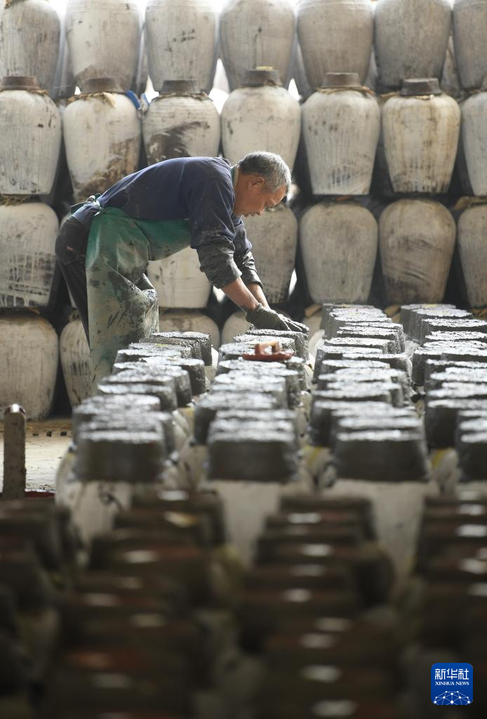 3月15日,在位于绍兴市柯桥区的浙江塔牌绍兴酒有限公司,酿酒师傅给春榨结束的黄酒糊泥头封坛。 近年来,在黄酒主产区浙江绍兴,黄酒产业在保留纯手工酿制技艺的基础上,开始向智能化生产迈进,逐步实现酿造智能化、储存智慧化、勾调数字化、物流无人化。与此同时,结合国潮,越来越多终端店铺推出黄酒奶茶、黄酒咖啡、黄酒布丁等创意饮品、美食,消费场景和包装愈发年轻态。 2023年绍兴市规上黄酒生产企业的总营收和利润实现双增长,黄酒衍生品也成为古城旅游消费的一大热点。 新华社记者 翁忻旸 摄pagebreak