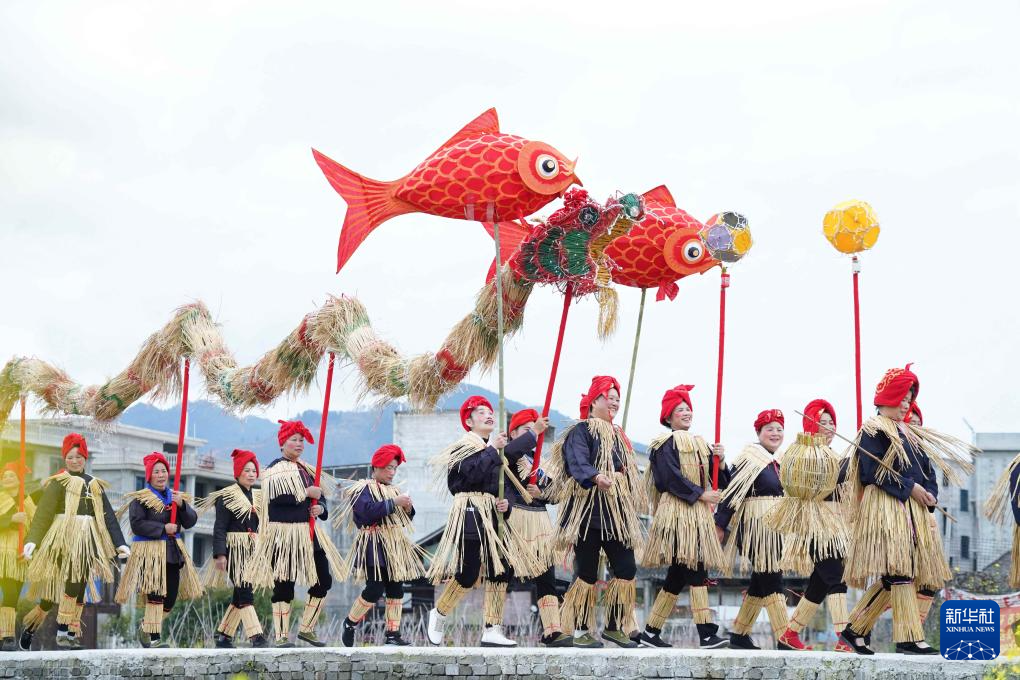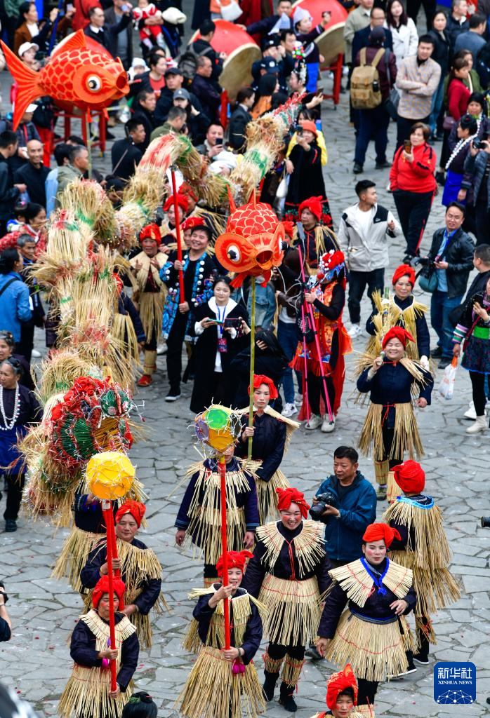 3月18日,当地群众在“萨玛节”活动中舞稻草龙。 当日,贵州省黔东南苗族侗族自治州榕江县三宝侗寨举办一年一度的“萨玛节”活动,数千名侗族群众参加祭萨仪式、千人多耶、舞稻草龙等民俗活动。 新华社发(韦贵金摄)pagebreak