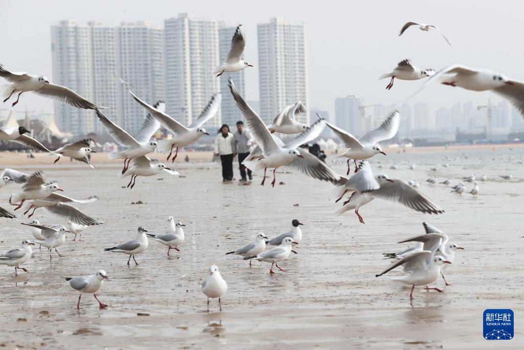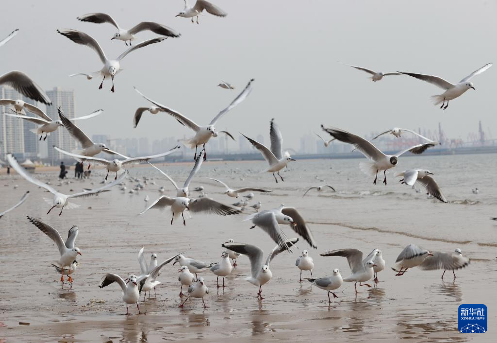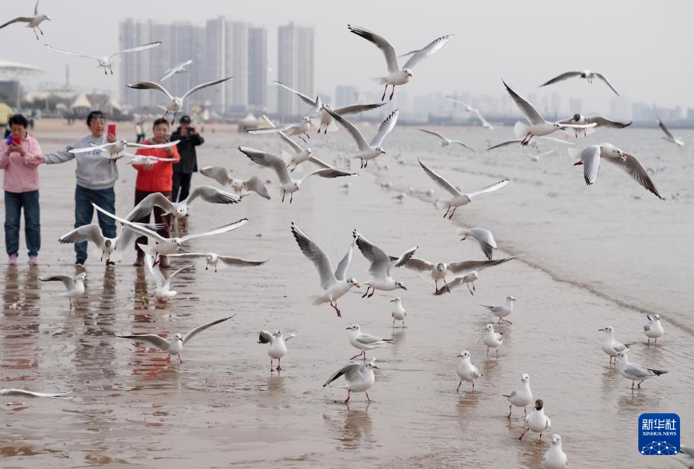 3月18日,海鸥在河北省秦皇岛市金梦海湾海边觅食。 春日和暖,大批海鸥在河北省秦皇岛市金梦海湾浴场飞舞、觅食,吸引游客前来观赏。 新华社记者 杨世尧 摄pagebreak