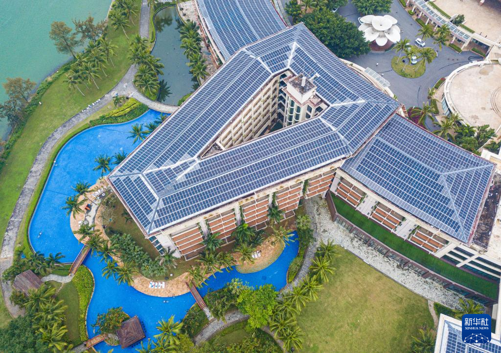 在博鳌近零碳示范区拍摄的新闻中心改造项目和安装在新闻中心室外的光伏地砖(3月9日摄,无人机照片)。 3月18日,博鳌近零碳示范区运行启动会在海南省琼海市博鳌镇东屿岛举行,标志着这个由住建部和海南省政府共建的达到国际先进水平的示范区进入了近零碳运行阶段。据悉,博鳌近零碳示范区通过不断探索,实现了8大类建设项目多系统无缝衔接,并将诸多系统集中整合到近零碳运行管理系统,实现智慧化运行和管理,并最终实现区域层面的近零碳。 新华社记者 蒲晓旭 摄pagebreak