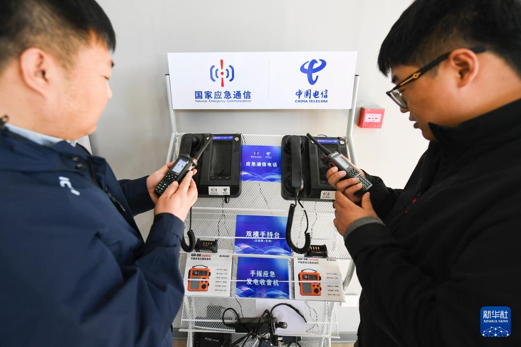 3月20日,工作人员在十渡应急保障中心安装调试对讲机、卫星电话等应急通讯设备。