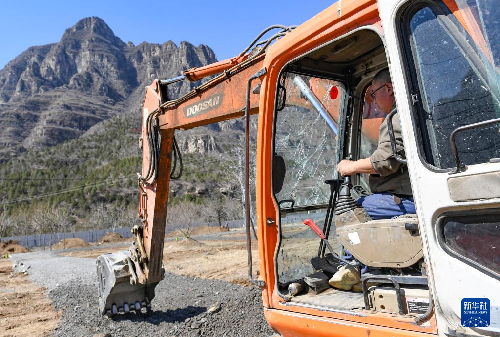 3月20日,施工人员在十渡镇十渡村宅基地平移地块上施工。该村经认定不适宜原址重建的民房将移至此处重建。