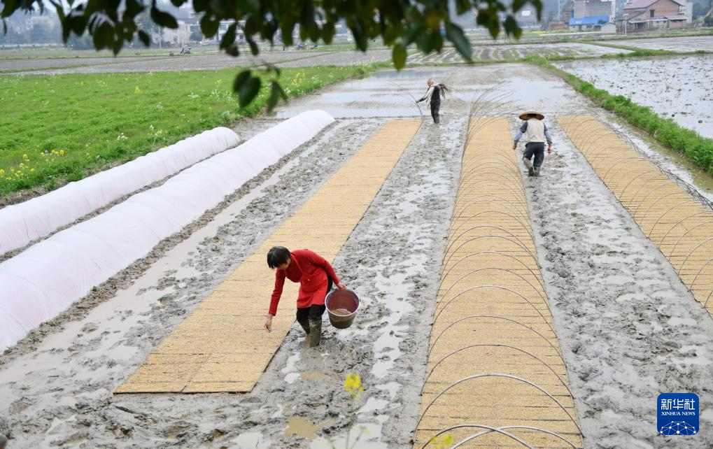 春暖花开时节,湖南省衡山县育秧合作社、企业等开足马力进行育秧作业,助力春耕生产。