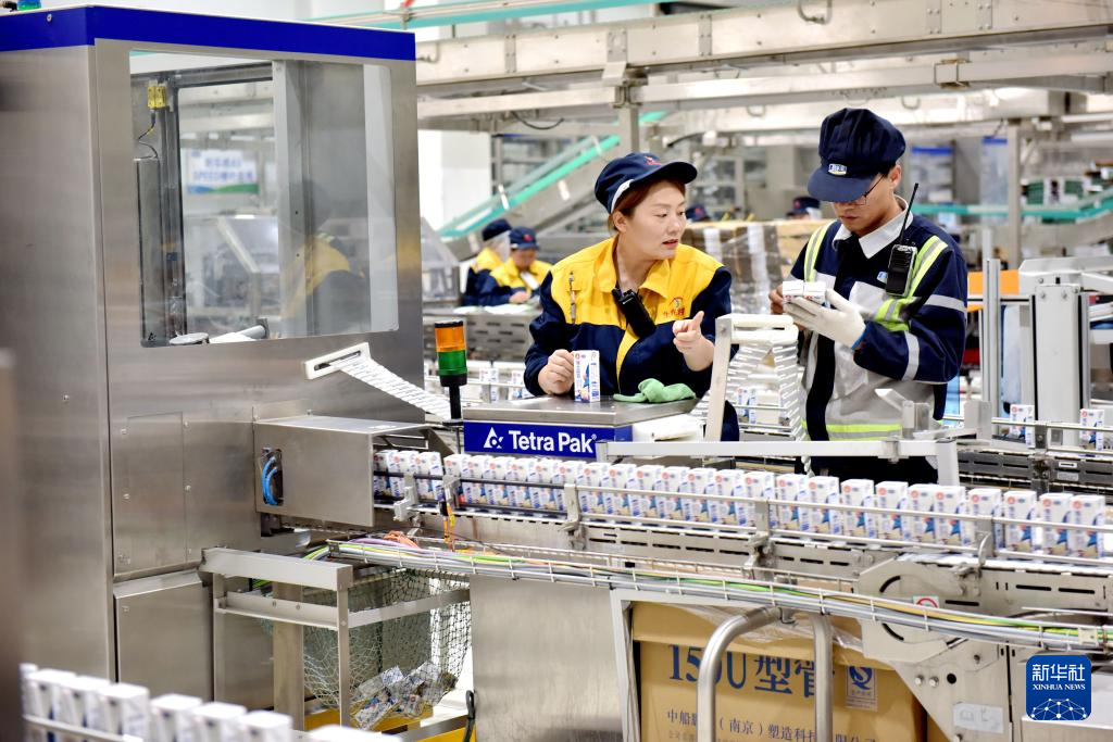 3月24日,工作人员在威县君乐宝乳业有限公司生产车间工作。