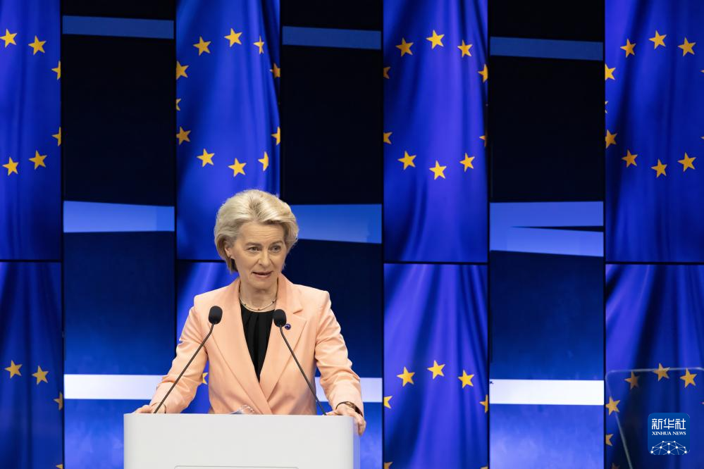 3月21日,欧盟委员会主席冯德莱恩在比利时布鲁塞尔举办的首届核能峰会上发言。