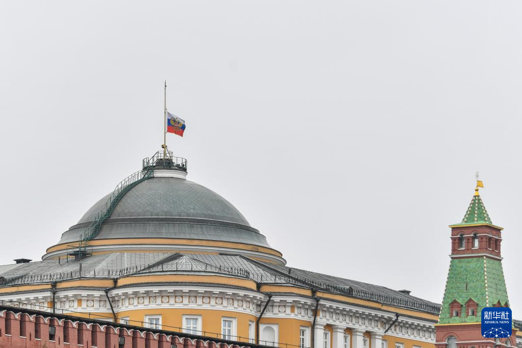 这是3月24日在俄罗斯莫斯科拍摄的降半旗的克里姆林宫。 俄罗斯首都莫斯科近郊一家音乐厅22日晚发生严重恐怖袭击事件。俄总统普京宣布3月24日为全国哀悼日。 新华社记者 曹阳 摄