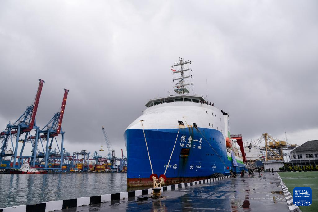 这是3月22日在印度尼西亚雅加达拍摄的停靠在丹戎不碌港的“探索一号”科考船。