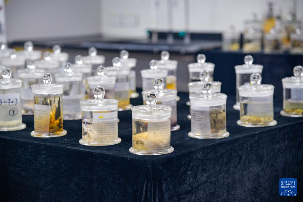 这是3月22日在印度尼西亚雅加达丹戎不碌港停靠的“探索一号”科考船上拍摄的爪哇海沟生物样本。