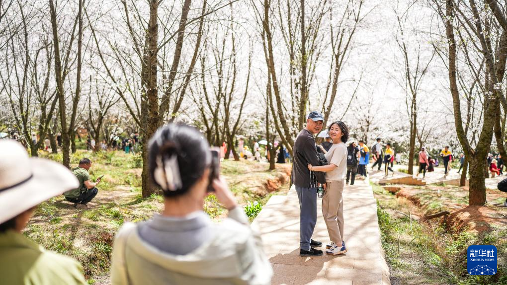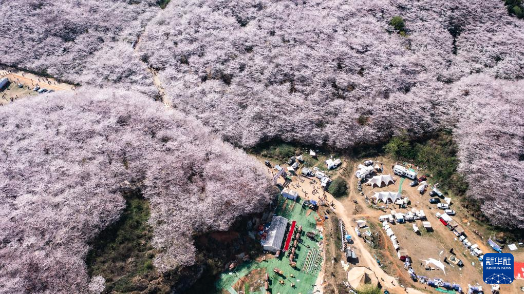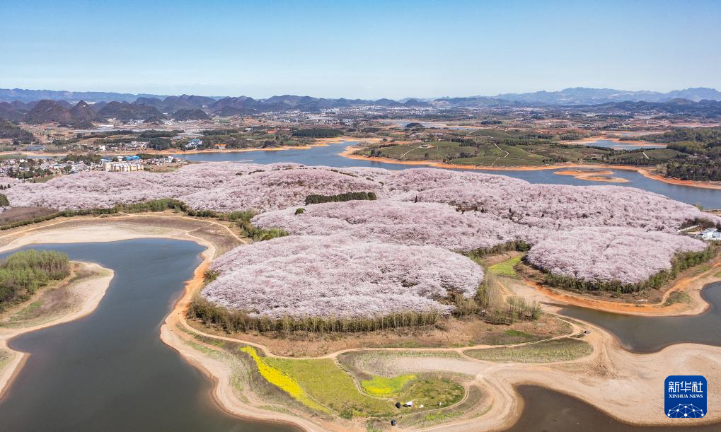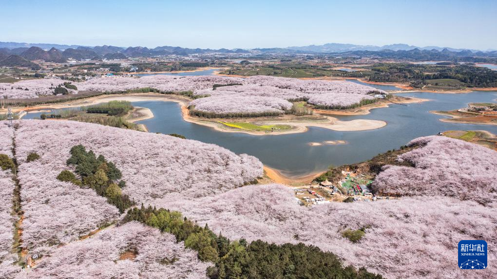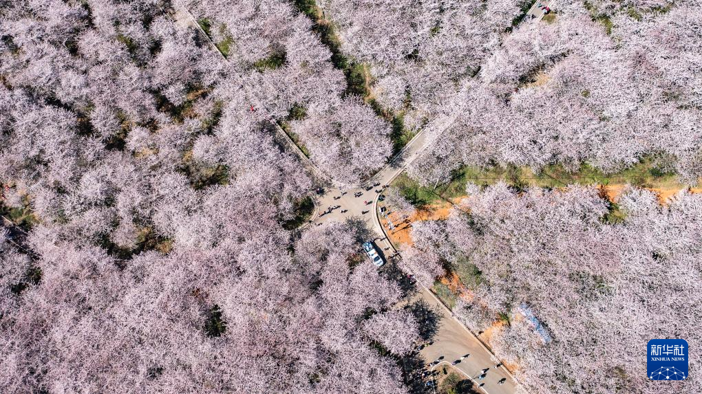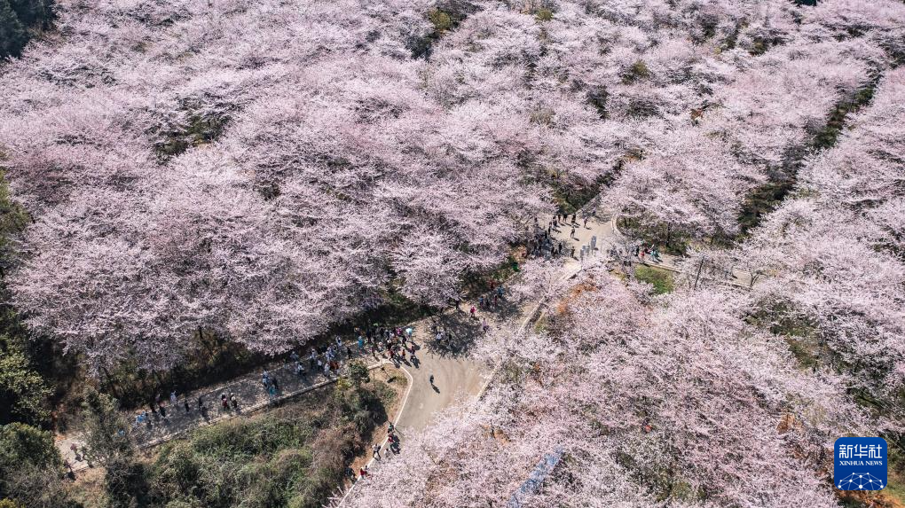 近日,贵州省贵安新区樱花园内的2.4万亩樱花迎来盛花期,花团锦簇,春意盎然,吸引各地游客前来赏花游玩。