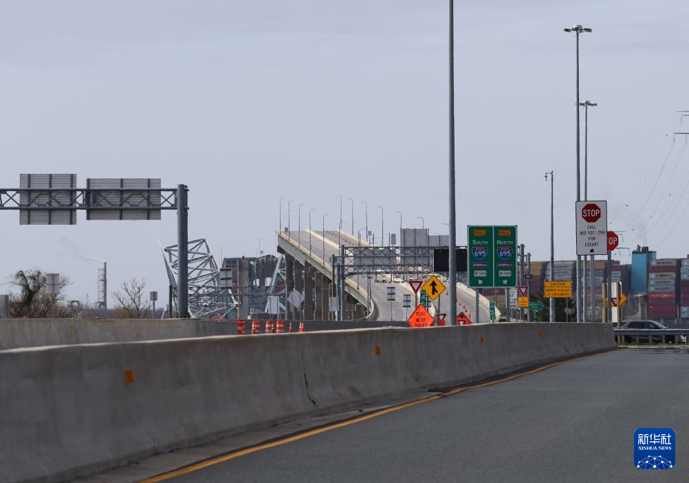 这是3月26日在美国马里兰州巴尔的摩拍摄的坍塌的大桥。