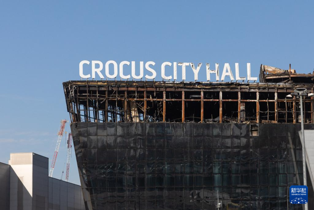 这是3月28日在俄罗斯莫斯科近郊拍摄的被烧毁的“克罗库斯城”音乐厅。 俄罗斯紧急情况部27日发布消息说,莫斯科近郊音乐厅恐袭事件遇难者人数升至143人。 新华社记者 白雪骐 摄