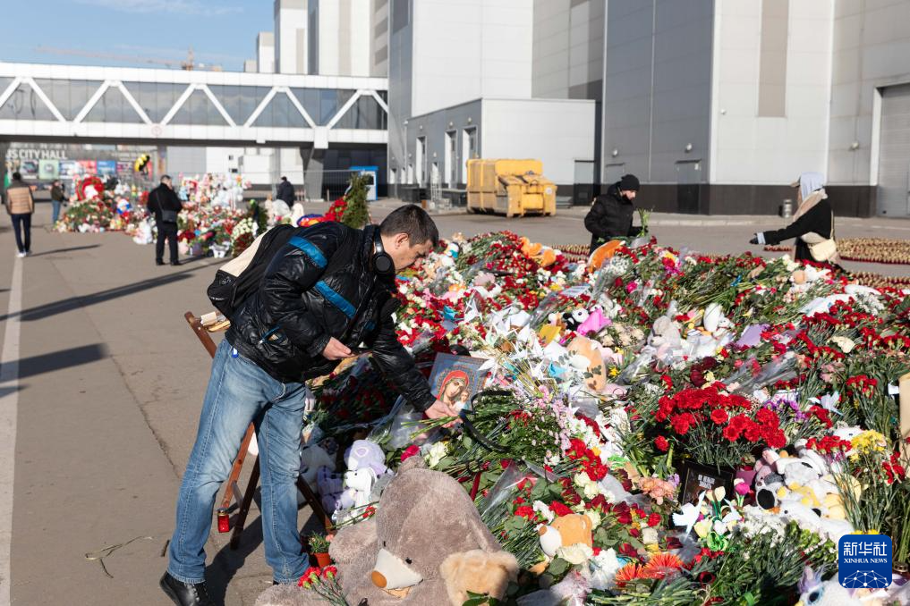 3月28日,人们在俄罗斯首都莫斯科近郊“克罗库斯城”音乐厅前摆放鲜花和玩具,悼念遇难者。 俄罗斯紧急情况部27日发布消息说,莫斯科近郊音乐厅恐袭事件遇难者人数升至143人。 新华社记者 白雪骐 摄 |