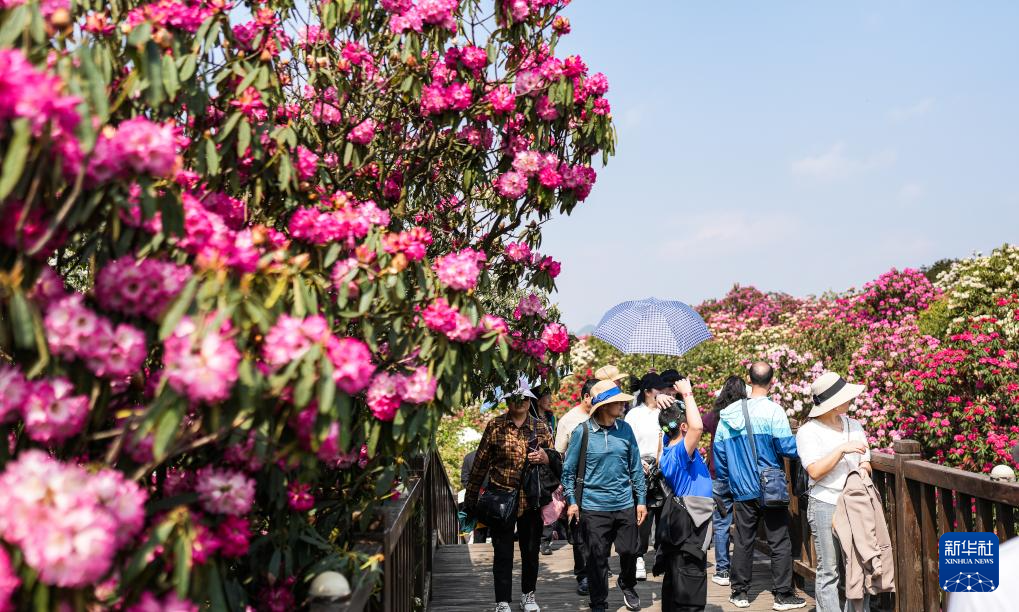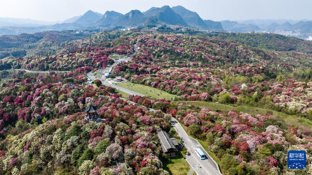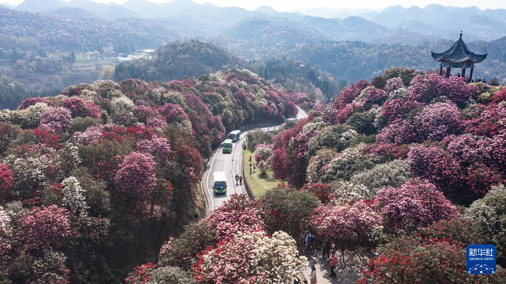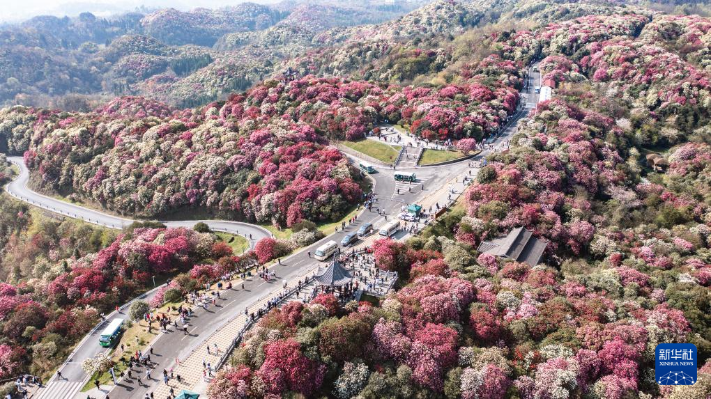 仲春时节,大地复苏。贵州省毕节市百里杜鹃景区的杜鹃花进入盛花期,前来赏花游玩的游客络绎不绝。百里杜鹃风景名胜区原生杜鹃林带绵延50余公里,享有“地球彩带”的美誉。