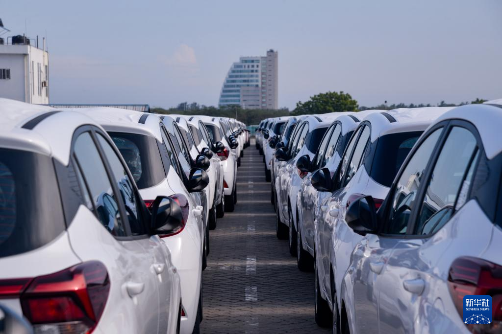 3月28日,卸运的汽车整齐地停放在斯里兰卡汉班托塔港。