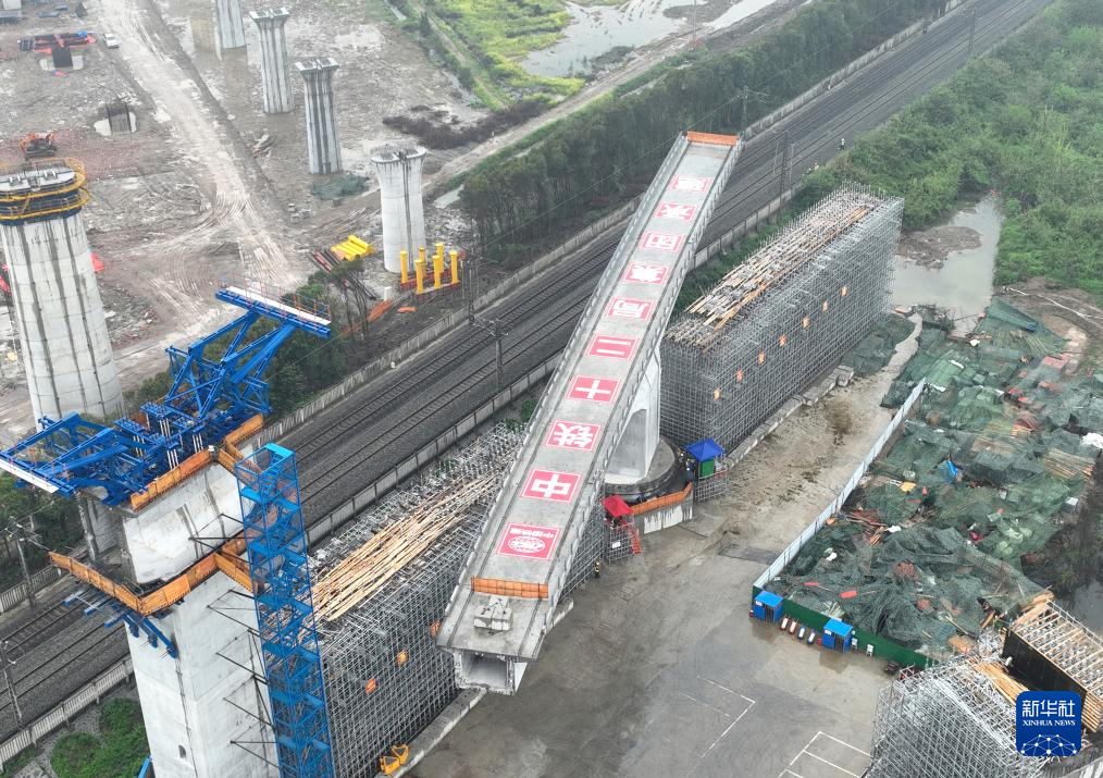 沪渝蓉高铁武宜段跨汉丹铁路特大桥成功转体