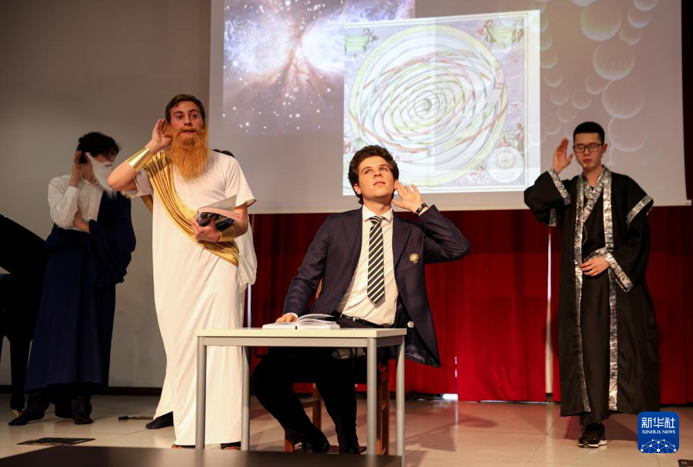 意大利学生的“春日畅想” 3月25日,在意大利罗马,罗马国立住读学校学生表演自编自导的中文短剧《梦见哲学》。该剧讲述了一名学习哲学的学生与中西方思想家的梦中“对话”。 当日,罗马国立住读学校孔子课堂“春日畅想”2023-2024学年汇报演出在意大利首都罗马举行,学生们以戏剧、歌曲、诗朗诵等多种方式展示他们的学习成果。 新华社记者 李京 摄