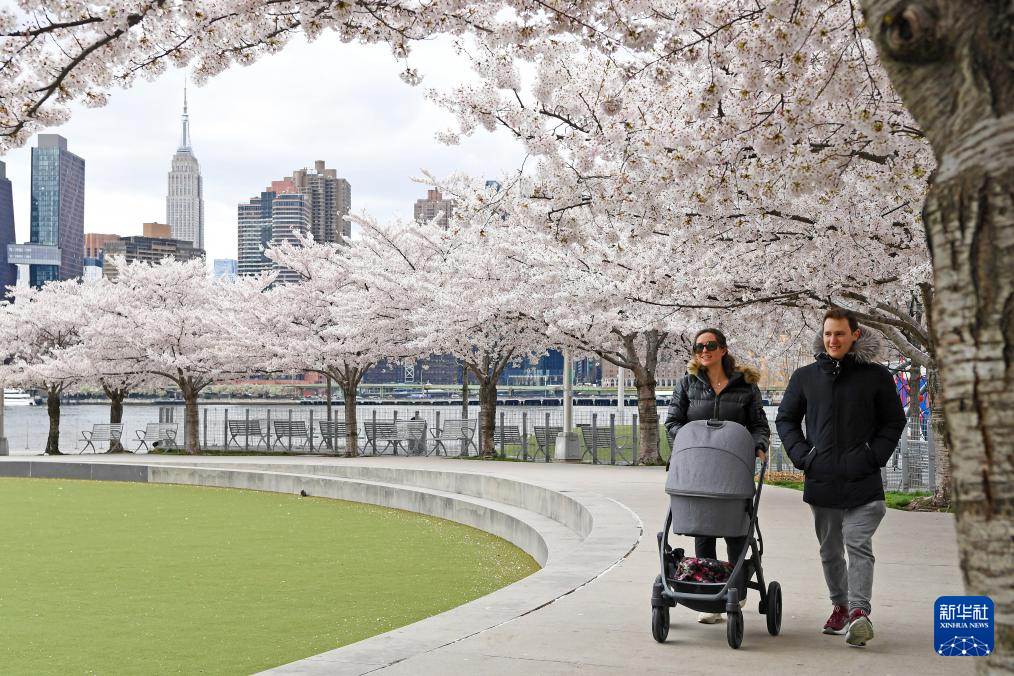 近日,随着气温回暖,纽约春花烂漫,人们前往公园踏春休闲。