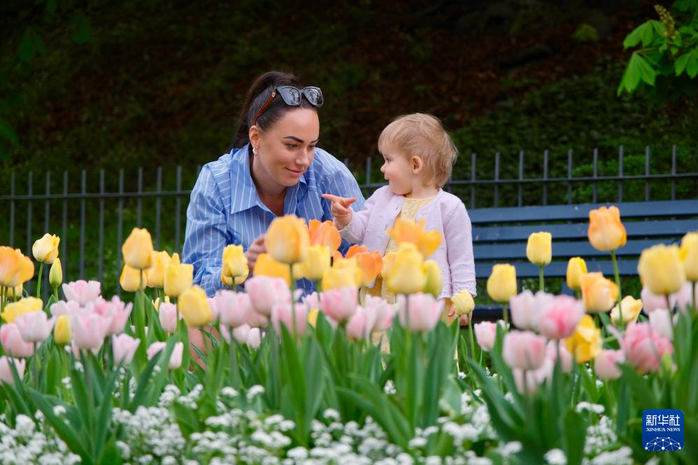 4月7日,人们在捷克首都布拉格的一处公园赏花。新华社记者 邓耀敏 摄