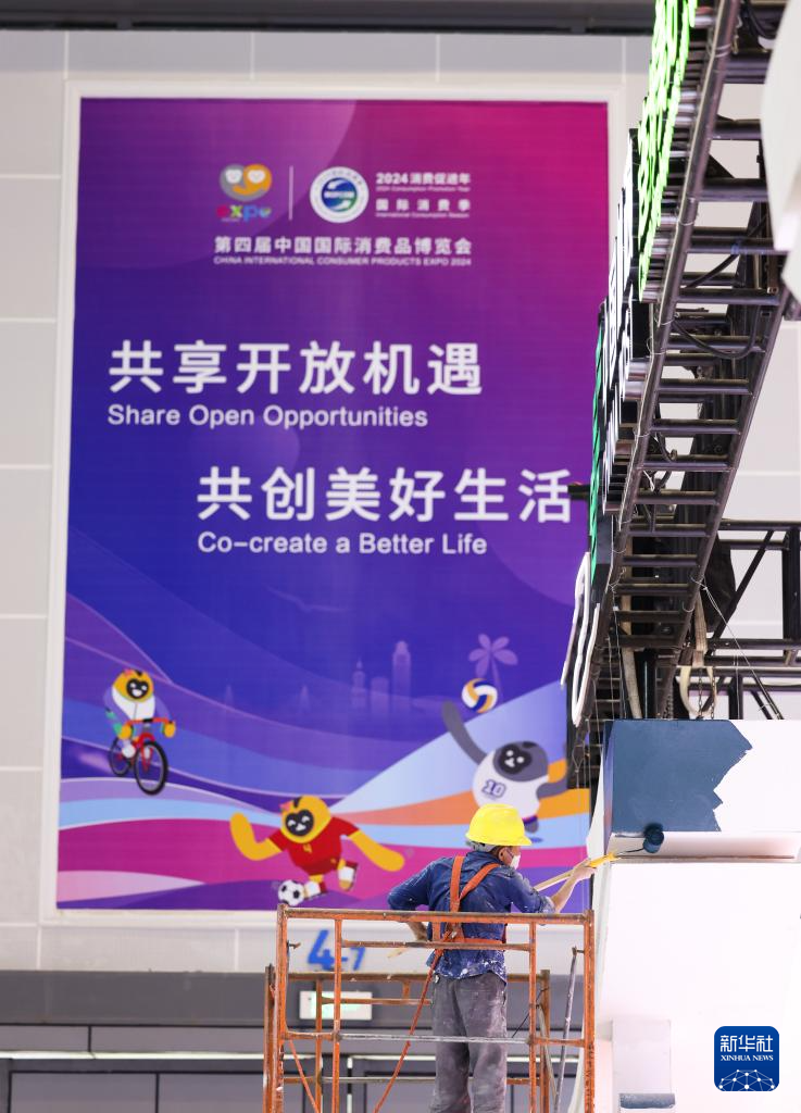 近日,第四届中国国际消费品博览会展台搭建工作在海南国际会展中心有序推进。据悉,以“共享开放机遇、共创美好生活”为主题的第四届中国国际消费品博览会将于4月13日至18日在海南省举行,将有来自59个国家和地区的3000多个品牌参展。