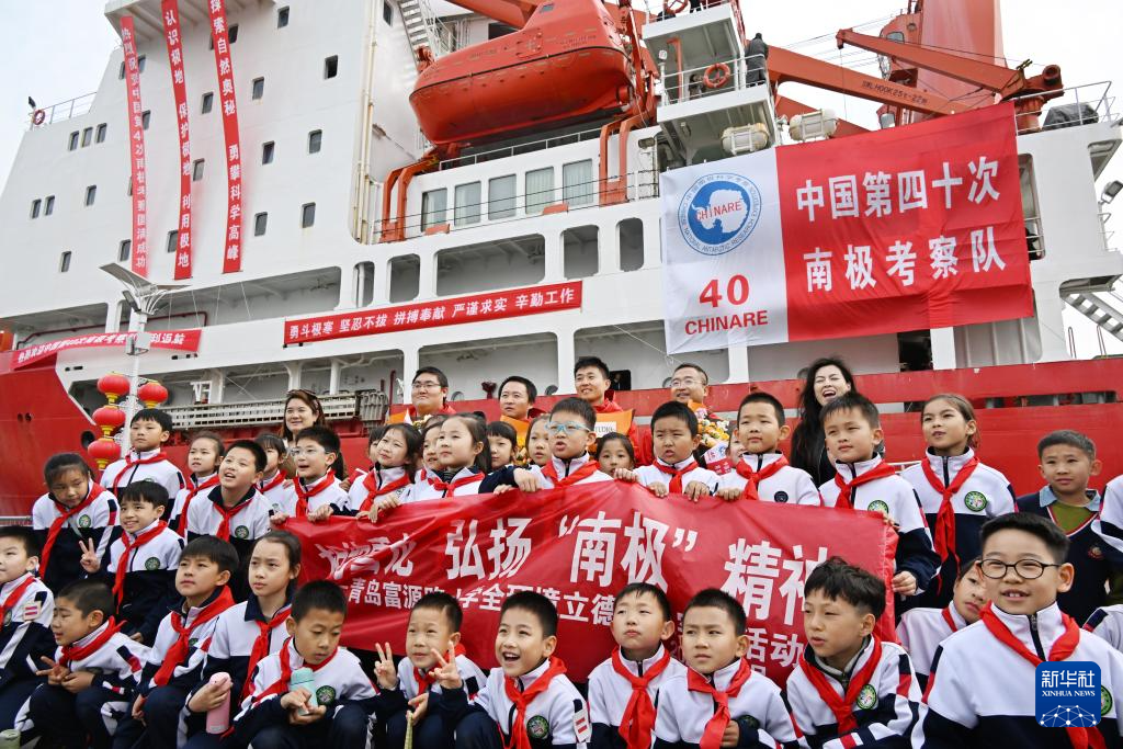 当日,“雪龙”号极地考察船停靠山东青岛。考察队于2023年11月1日从国内出发,历时5个多月,总航程8.1万余海里。自然资源部与山东省人民政府在青岛奥帆基地码头举行欢迎活动,之后,“雪龙”号将举办为期三天的开放日活动,供社会公众参观。