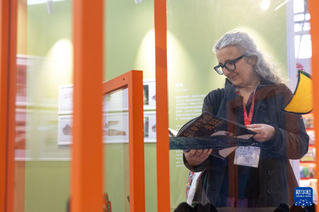 4月10日,参观者在意大利博洛尼亚国际童书展中国图书展区翻阅图书。 第61届博洛尼亚国际儿童书展8日在意大利博洛尼亚会展中心开幕。中国是本届书展唯一的“市场焦点国家”,展位空间增大、参展商增多,并将在参展期间举办中国市场焦点活动。 新华社记者 李京 摄