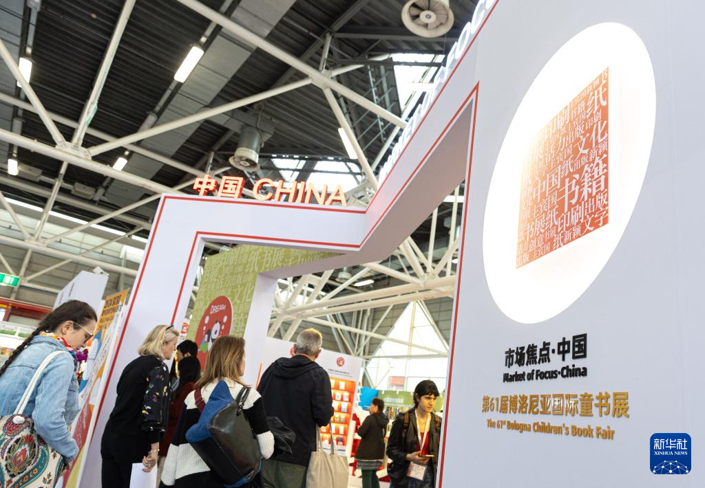4月8日,人们在意大利博洛尼亚国际童书展中国图书展区参观。 第61届博洛尼亚国际儿童书展8日在意大利博洛尼亚会展中心开幕。中国是本届书展唯一的“市场焦点国家”,展位空间增大、参展商增多,并将在参展期间举办中国市场焦点活动。 新华社记者 李京 摄