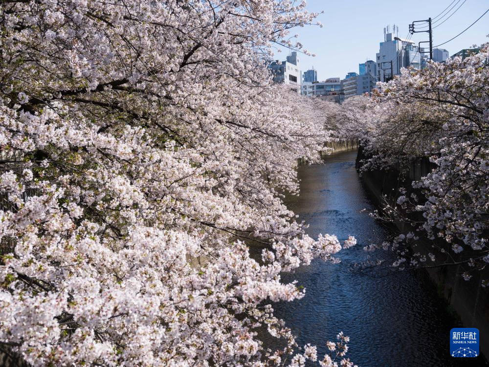 这是4月10日在日本东京神田川沿岸拍摄的樱花。 新华社记者 张笑宇 摄