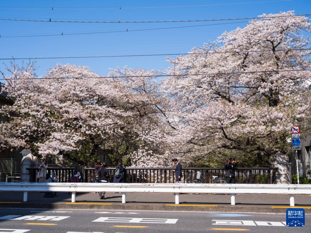 4月10日,人们在日本东京神田川沿岸赏樱。 新华社记者 张笑宇 摄