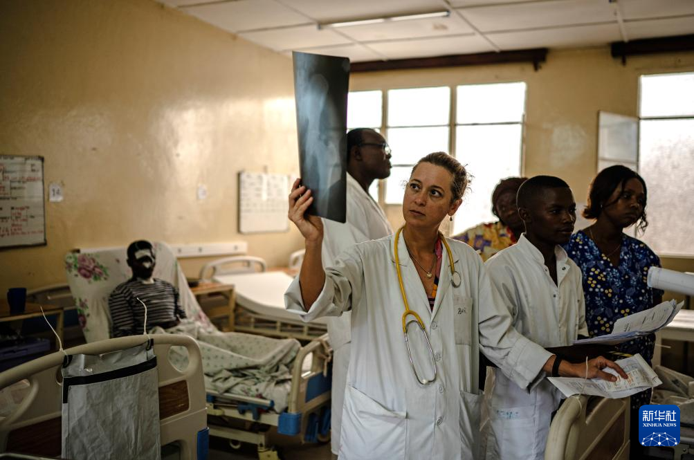 4月13日,一名医生在刚果(金)东部北基伍省戈马市的恩多绍医院内查看患者的X光片。 恩多绍医院位于刚果(金)东部北基伍省首府戈马市,拥有80余张固定床位和约20名医护人员。近年来,包括北基伍省在内的刚果(金)东部地区安全形势严峻,造成大量人员伤亡,当地许多医疗机构也被迫关闭。作为戈马市唯一一家接收冲突伤员的医疗机构,恩多绍医院为缓解就诊压力在院内停车场搭建临时帐篷,将床位总数增至约130张。 新华社记者 王冠森 摄