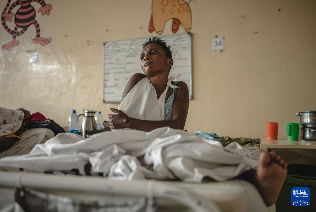 这是4月13日在刚果(金)东部北基伍省戈马市的恩多绍医院拍摄的一名患者。 恩多绍医院位于刚果(金)东部北基伍省首府戈马市,拥有80余张固定床位和约20名医护人员。近年来,包括北基伍省在内的刚果(金)东部地区安全形势严峻,造成大量人员伤亡,当地许多医疗机构也被迫关闭。作为戈马市唯一一家接收冲突伤员的医疗机构,恩多绍医院为缓解就诊压力在院内停车场搭建临时帐篷,将床位总数增至约130张。 新华社记者 王冠森 摄