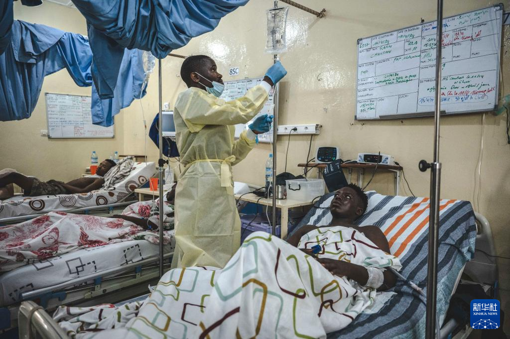 4月13日,一名医护人员在刚果(金)东部北基伍省戈马市的恩多绍医院内为患者输液。 恩多绍医院位于刚果(金)东部北基伍省首府戈马市,拥有80余张固定床位和约20名医护人员。近年来,包括北基伍省在内的刚果(金)东部地区安全形势严峻,造成大量人员伤亡,当地许多医疗机构也被迫关闭。作为戈马市唯一一家接收冲突伤员的医疗机构,恩多绍医院为缓解就诊压力在院内停车场搭建临时帐篷,将床位总数增至约130张。 新华社记者 王冠森 摄