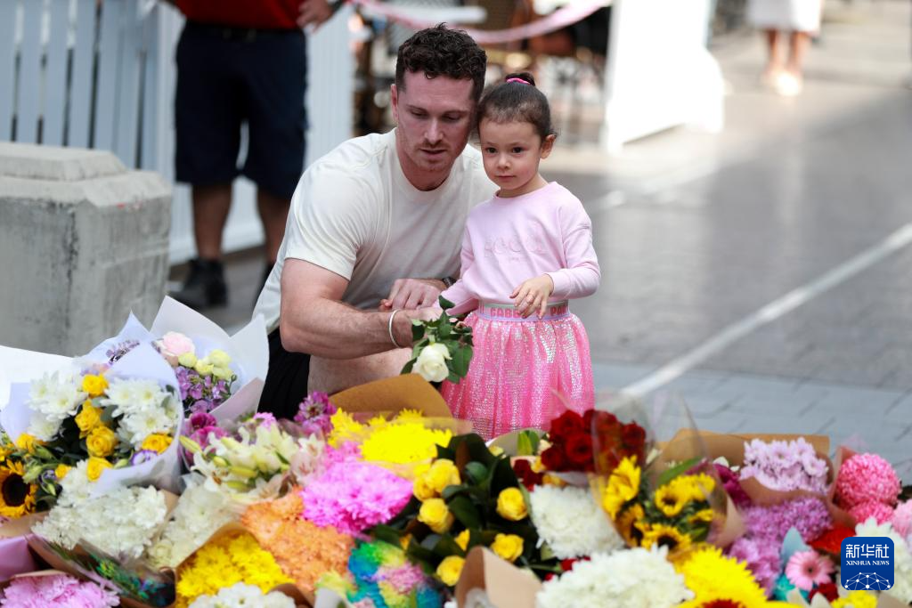 4月14日,在澳大利亚悉尼,人们在发生持刀袭击事件的商场附近献花,悼念遇难者。 澳大利亚警方13日说,悉尼东南部邦迪路口地区一家商场当天发生的持刀袭击事件已造成6名受害者死亡,另有多人受伤,行凶者当场被警方击毙。 新华社记者 马平 摄