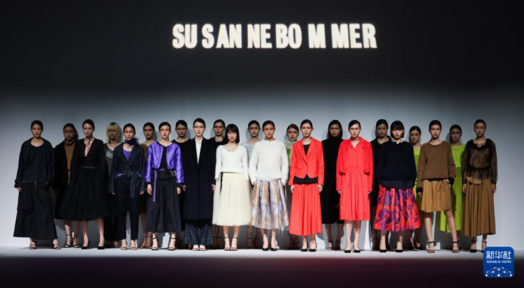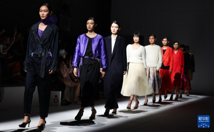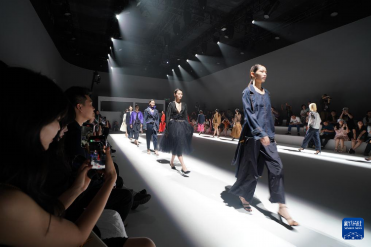 4月15日,在海口国际免税城消博会时装周主秀场,模特在展示时装作品。
