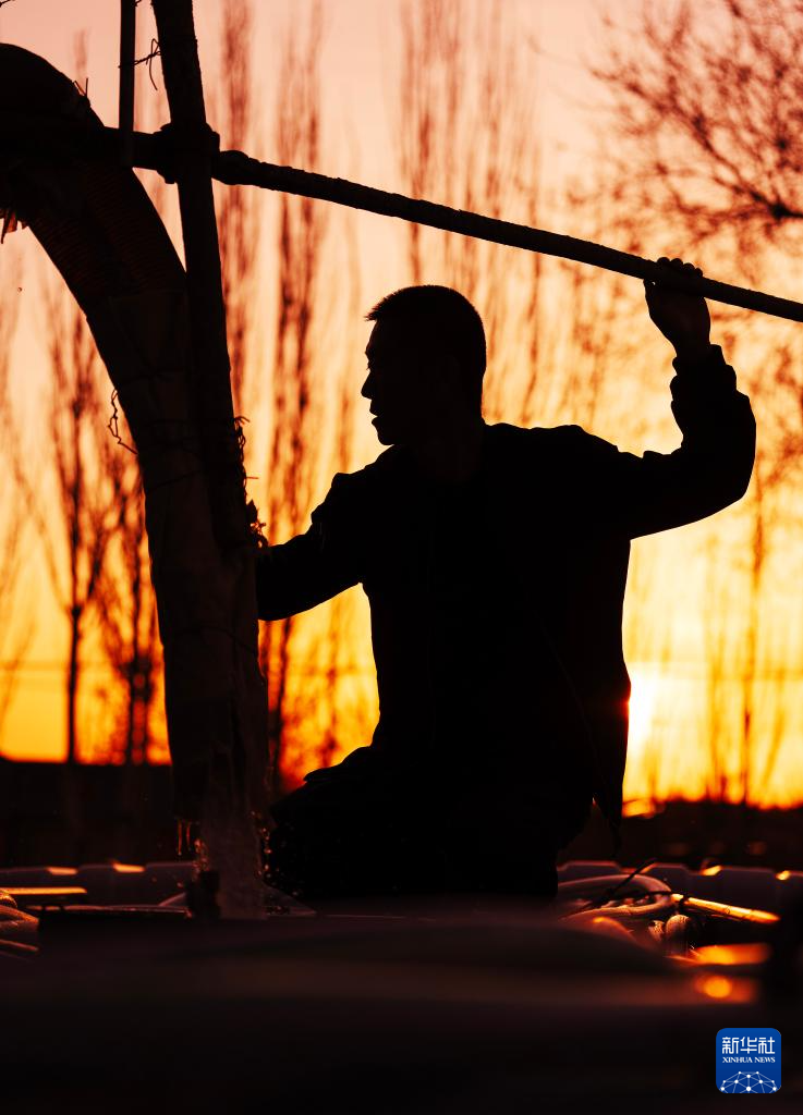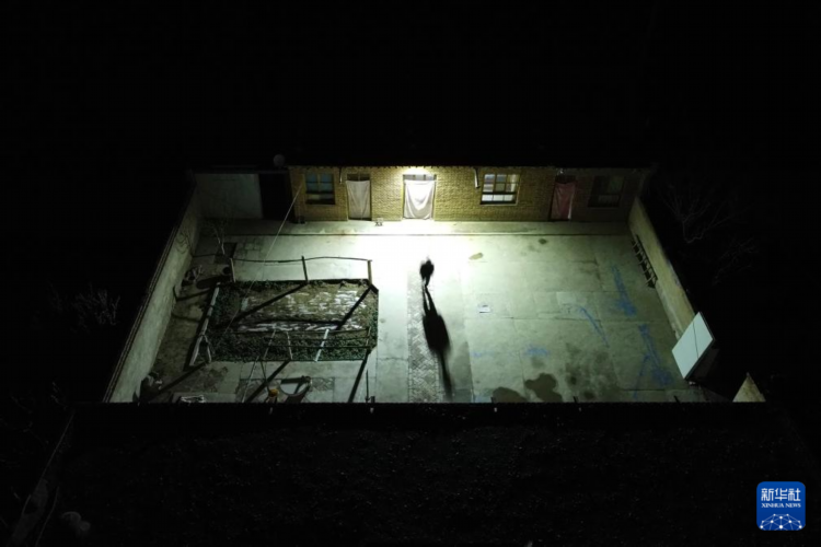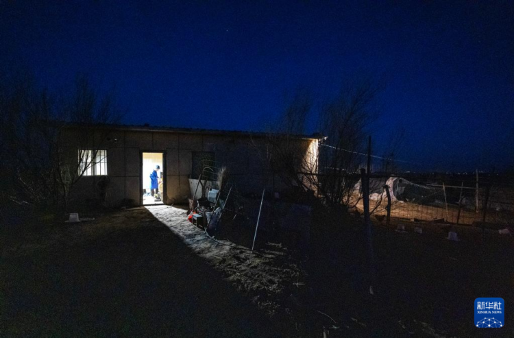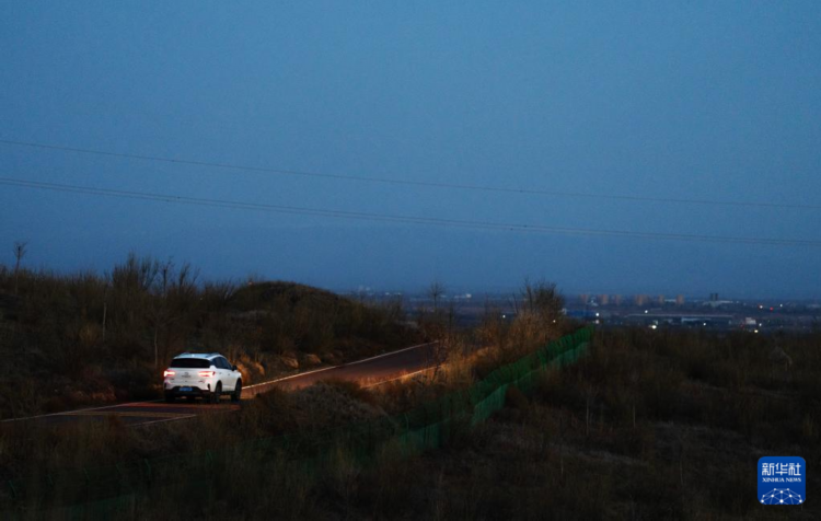 4月10日傍晚,在古浪县八步沙林场,郭玺准备回家。新华社记者 费茂华 摄