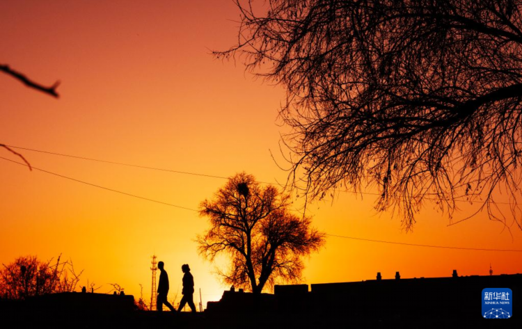 4月10日傍晚,在古浪县土门镇,郭玺(左)和妻子晚饭后散步。新华社记者 费茂华 摄