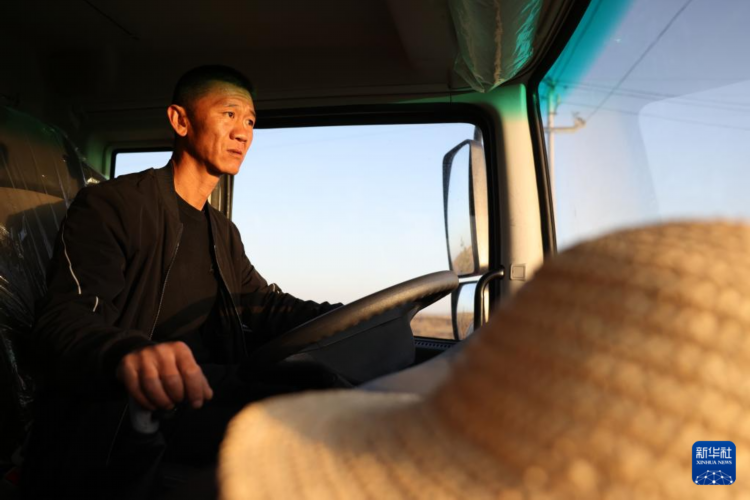 4月10日,结束喂鸡工作后,郭玺驾车驶往八步沙林场蓄水池。新华社记者 费茂华 摄