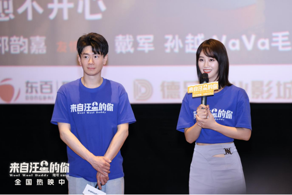 当天《来自汪星的你》团队还亮相多家影城。一位福州观众为主演蓝盈莹送上福建特色小吃福鼎肉片,并戏称福鼎肉片比剧中的红烧肉要更清淡健康一些,导演陆可表示“从小就吃福鼎肉片,很爱这一口”。另一位观众则送出令人感到意外的礼物——一根牵引绳,并表示这个礼物很适合当代年轻人的精神状态,“青春没有售价,没事溜溜我爸”,顺口溜一出,引得全场大笑。蓝盈莹以此为道具现场还原了电影中遛爸爸的经典名场面。