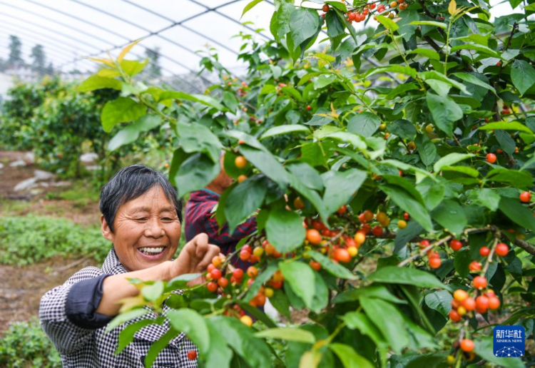 4月21日,村民在重庆市璧山区七塘镇四合村云雾知樱果园采摘樱桃。