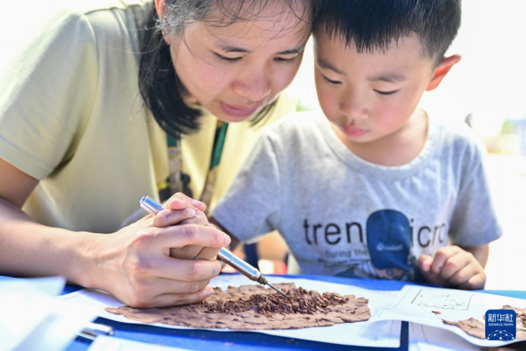 4月24日,小朋友和家长在文昌航天科普中心用软泥制作遥感地理图。