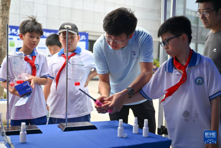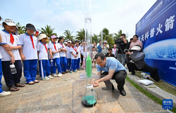 当日是中国航天日,海南文昌举办“气象航天手牵手”系列科普活动,用各种趣味实验和游戏让观众了解航天知识。