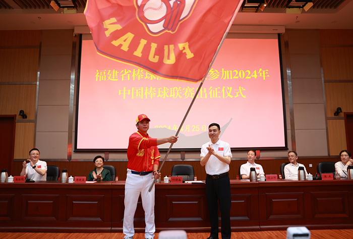 海峡网4月25日讯(海峡网记者 黄小群)为推动两岸融合发展新路上更进一步,今日,福建省棒球队正式成立。来自台湾的2名教练员和6名运动员以“闽台联合组队”的形式加入,共同出征在山东威海举行的中国棒球联赛。福建省体育局党组书记、局长叶得盛出席会议并讲话,并为福建省棒球队授旗。中棒协、亚洲棒球总会和省台办、教育厅、财政厅、厦大、师大等有关部门领导出席了出征仪式。