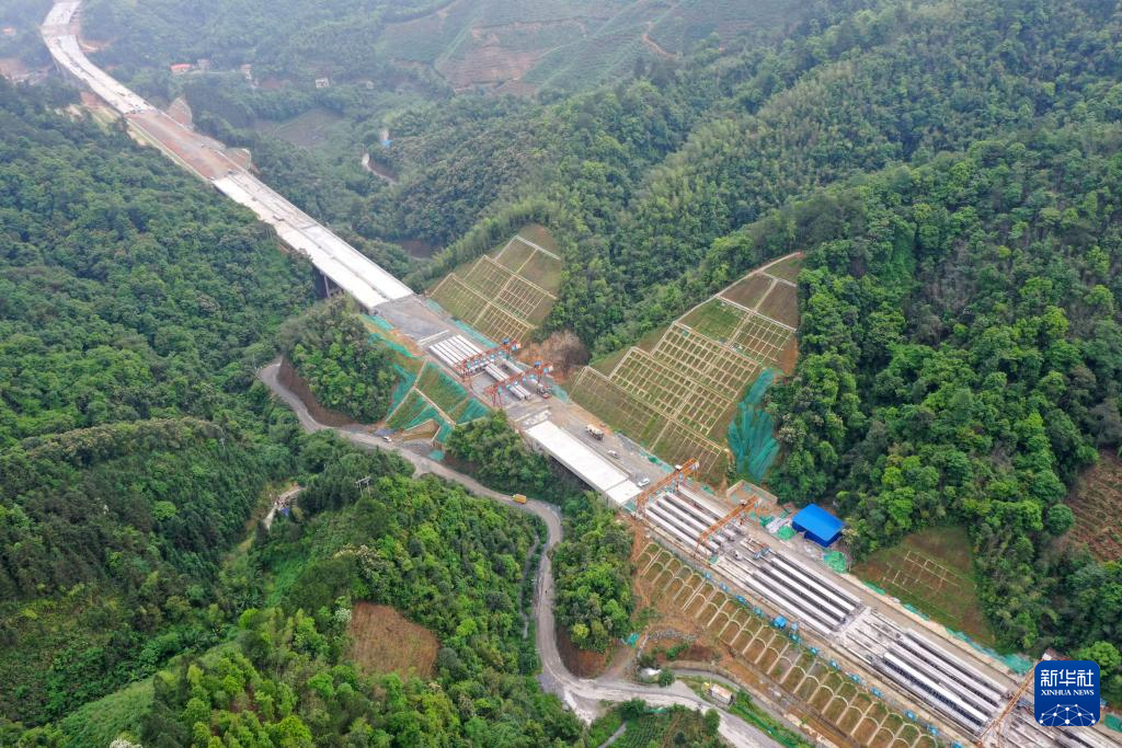 这是广西昭平县境内正在建设的苍昭高速公路隧道(4月25日摄,无人机照片)。