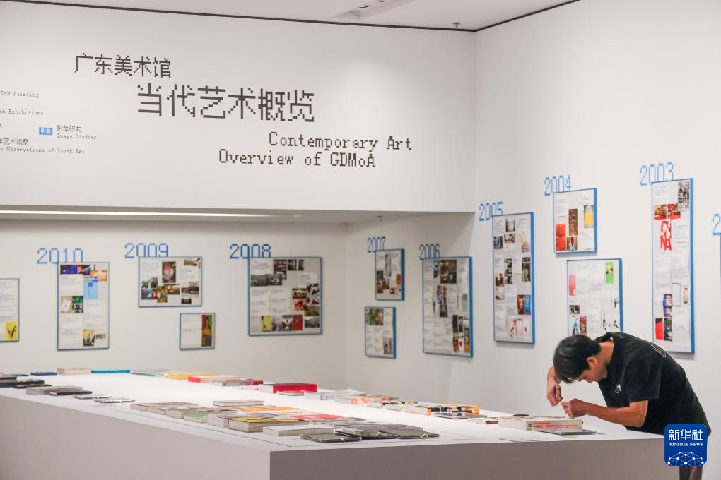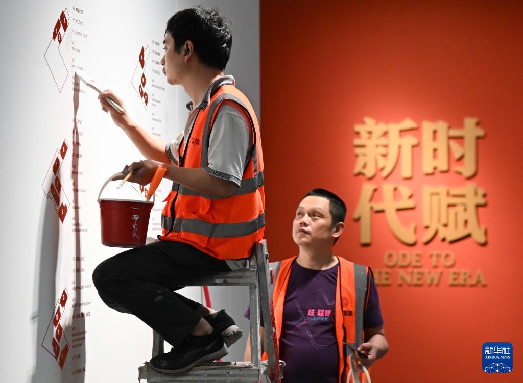 4月27日,工作人员在白鹅潭大湾区艺术中心广东美术馆布展。