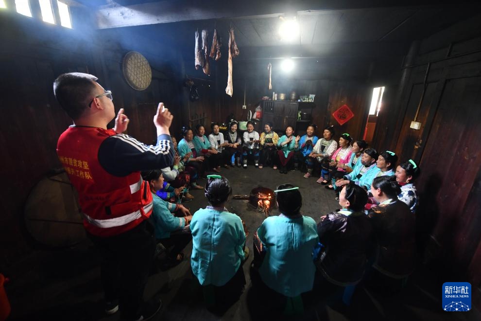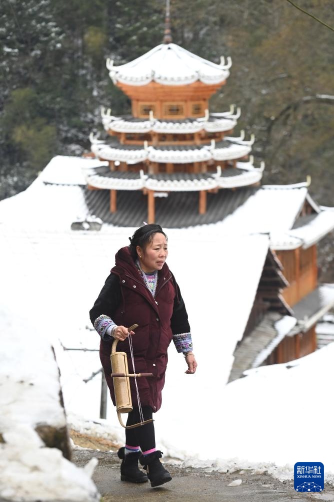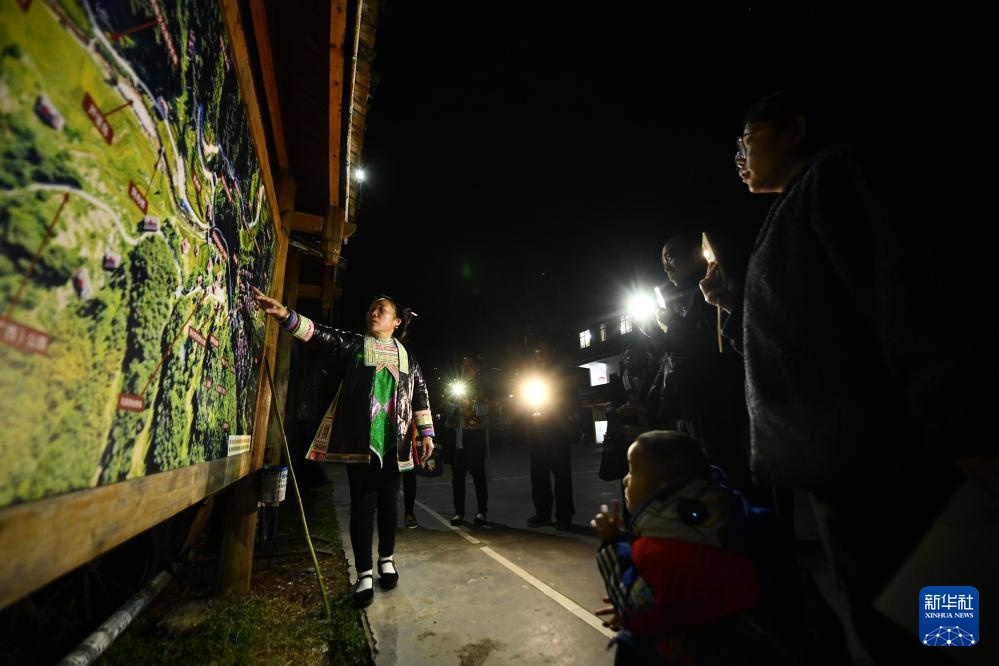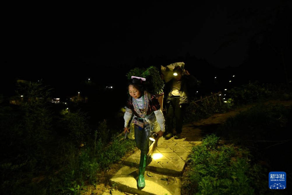 乌英苗寨妇女梁足英在打更巡寨(2024年1月25日摄)。 新华社记者 黄孝邦 摄