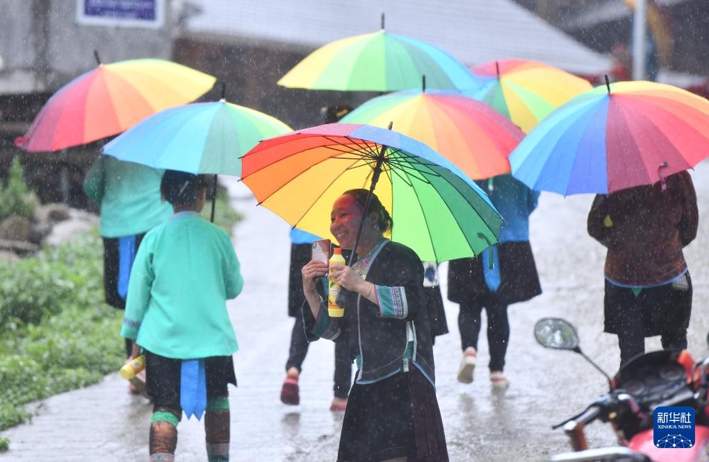 在乌英苗寨,梁足英和同学们走在课后回家的路上(2020年6月6日摄)。 新华社记者 黄孝邦 摄
