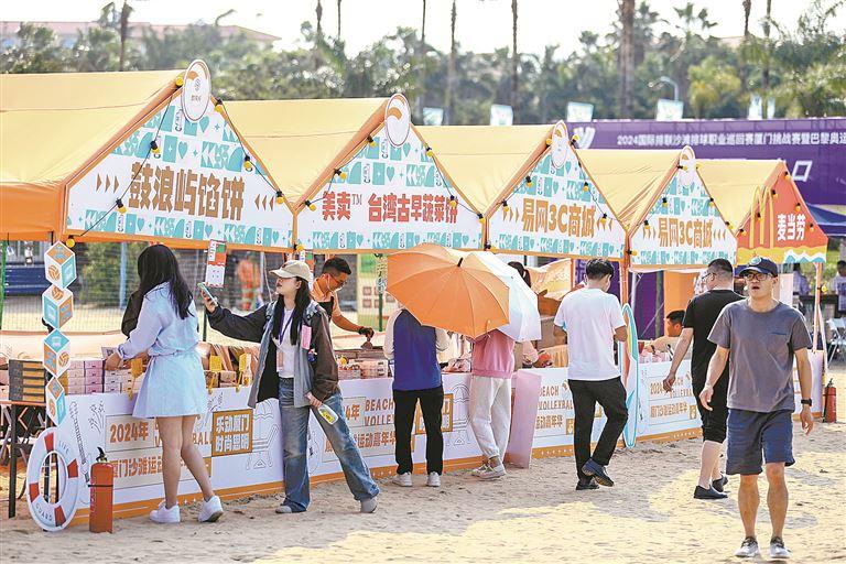 借力赛事,今年思明区创新打造“观看赛事+运动体验+创意市集+露营节+音乐会”沙滩嘉年华新场景,结合多种业态,满足市民游客不同需求,进一步增加赛事吸引力。参与趣味沙滩竞技、亲子互动游戏,品尝本土特色美食,在海边夜色中跟着音乐轻轻摇摆……从白天到夜晚,市民游客在多彩文旅体验活动中,享受健康和时尚带来的快乐。