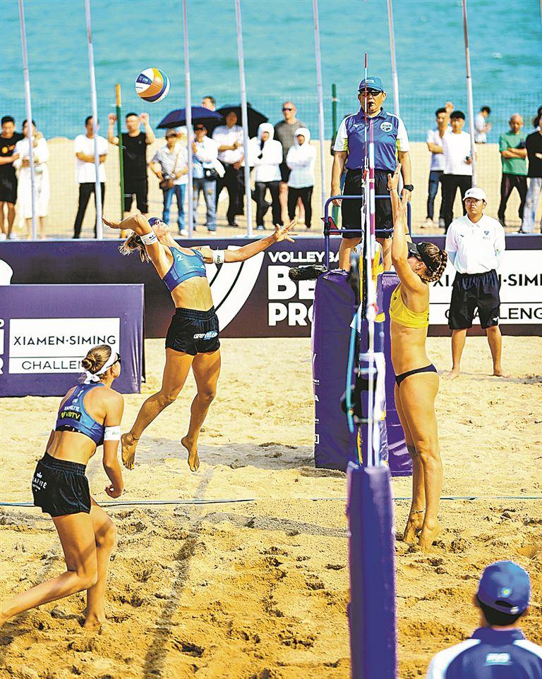 天公作美,阳光在线。昨日下午,环岛路椰风寨掌声、呐喊声此起彼伏。2024国际排联沙滩排球职业巡回赛厦门挑战赛暨巴黎奥运会资格赛打响冠军争夺战,顶级运动员上演巅峰对决,赛事迎来最高潮。