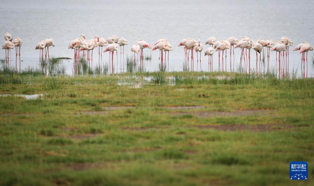 4月28日,在肯尼亚卡贾多县,火烈鸟在安博塞利国家公园里栖息。 安博塞利国家公园位于肯尼亚与坦桑尼亚交界地区,坐落在非洲第一高峰乞力马扎罗山脚下,是世界闻名的旅游胜地。园区面积超过390平方公里,草原景色优美,栖息着大象、狮子、羚羊、角马、长颈鹿、水牛、多种鸟类等丰富多样的野生动物,吸引了来自世界各地的游客。 新华社记者 韩旭 摄