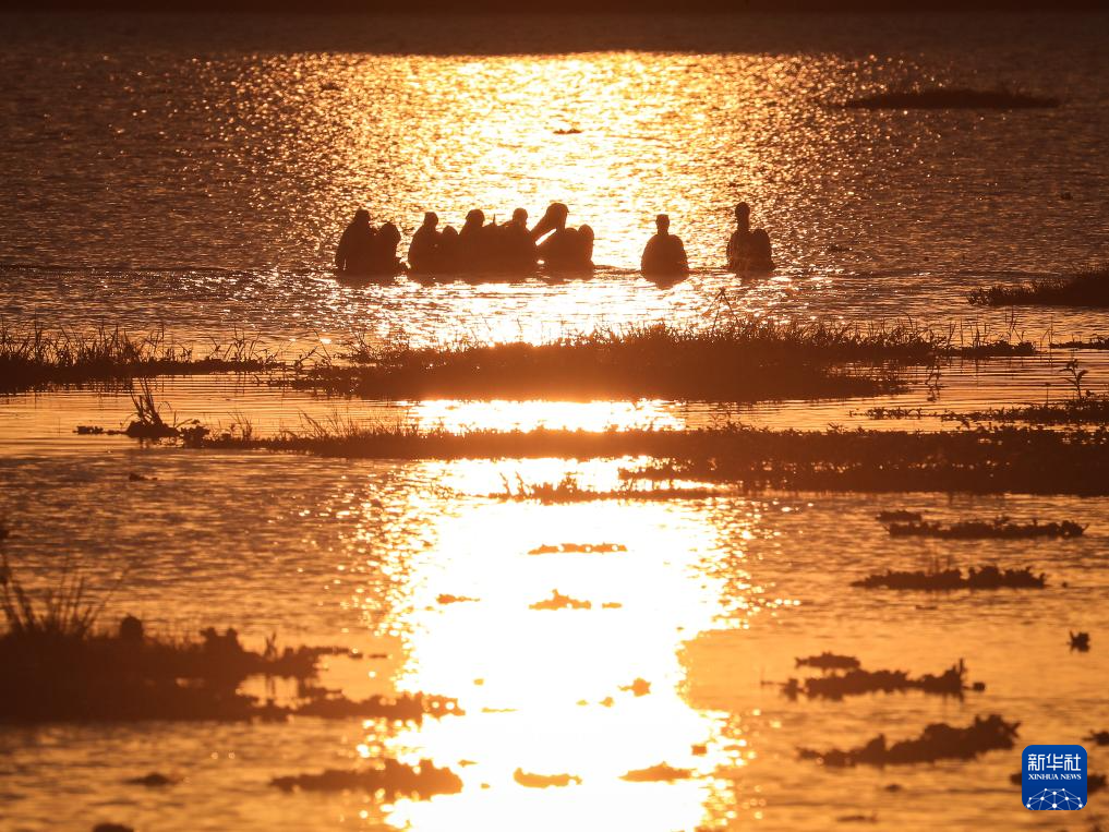 4月27日,在肯尼亚卡贾多县,鹈鹕在夕阳时分的安博塞利国家公园里活动。 安博塞利国家公园位于肯尼亚与坦桑尼亚交界地区,坐落在非洲第一高峰乞力马扎罗山脚下,是世界闻名的旅游胜地。园区面积超过390平方公里,草原景色优美,栖息着大象、狮子、羚羊、角马、长颈鹿、水牛、多种鸟类等丰富多样的野生动物,吸引了来自世界各地的游客。 新华社记者 韩旭 摄